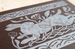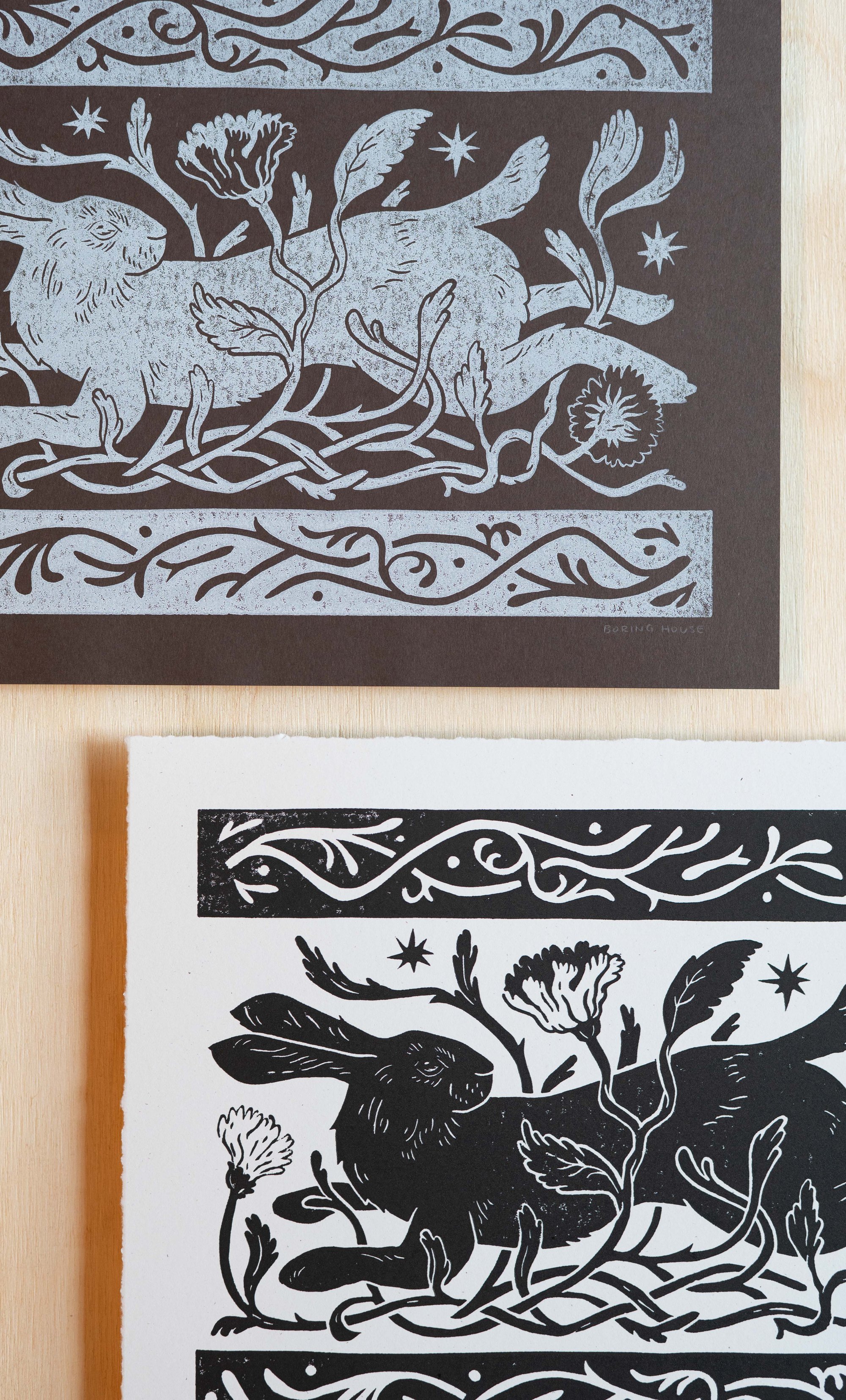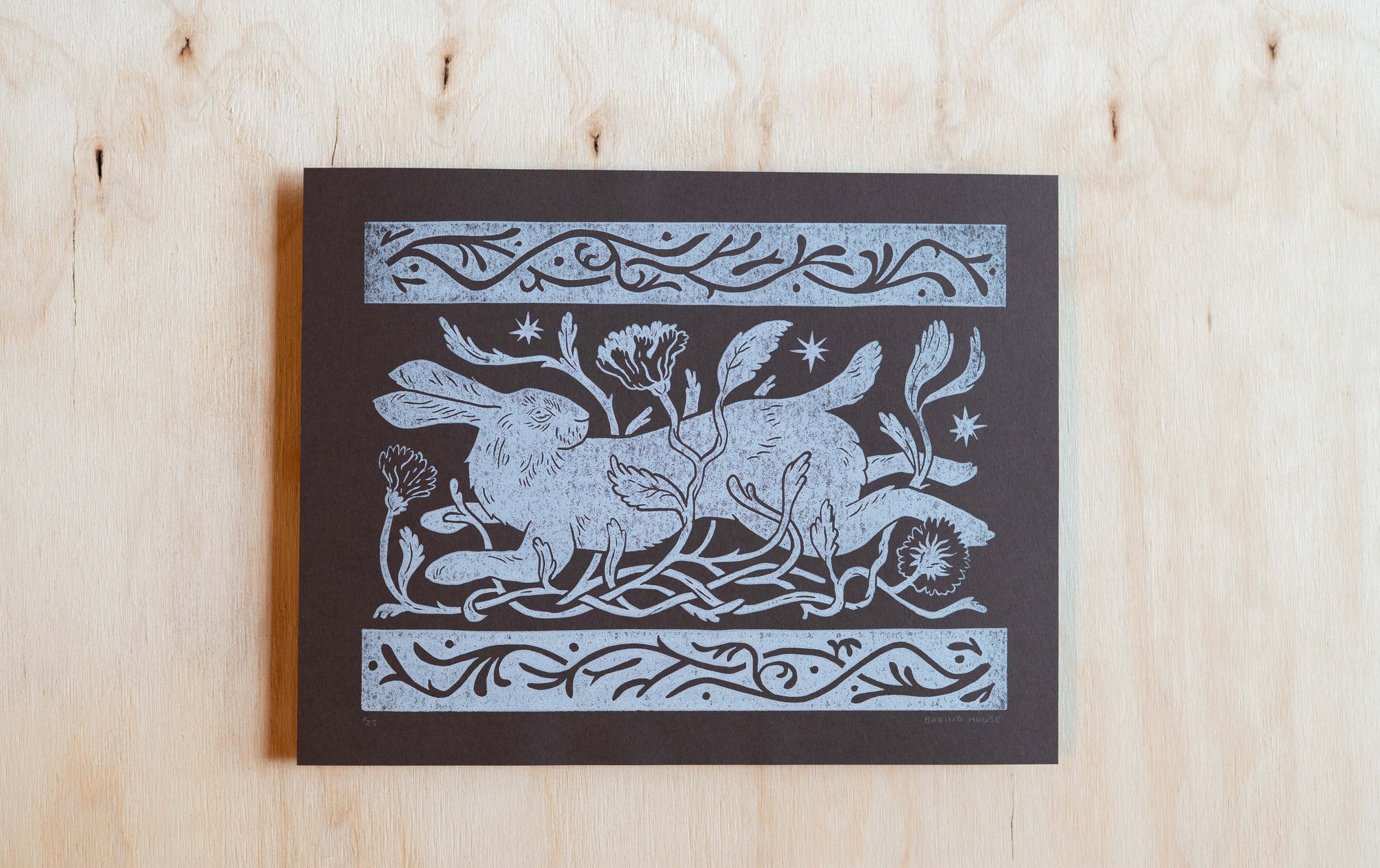 This one color folk art inspired bock print is a striking stand alone piece or a nice addition to a gallery wall.