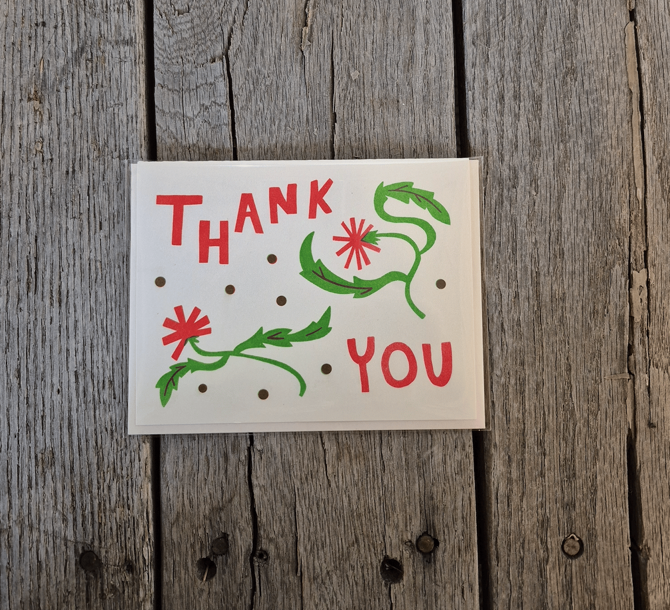 This floral thank you card is empty inside, ready to be filled with your handwritten notes. Purchase individually, or mix and match with the other green and red cards in this series!
